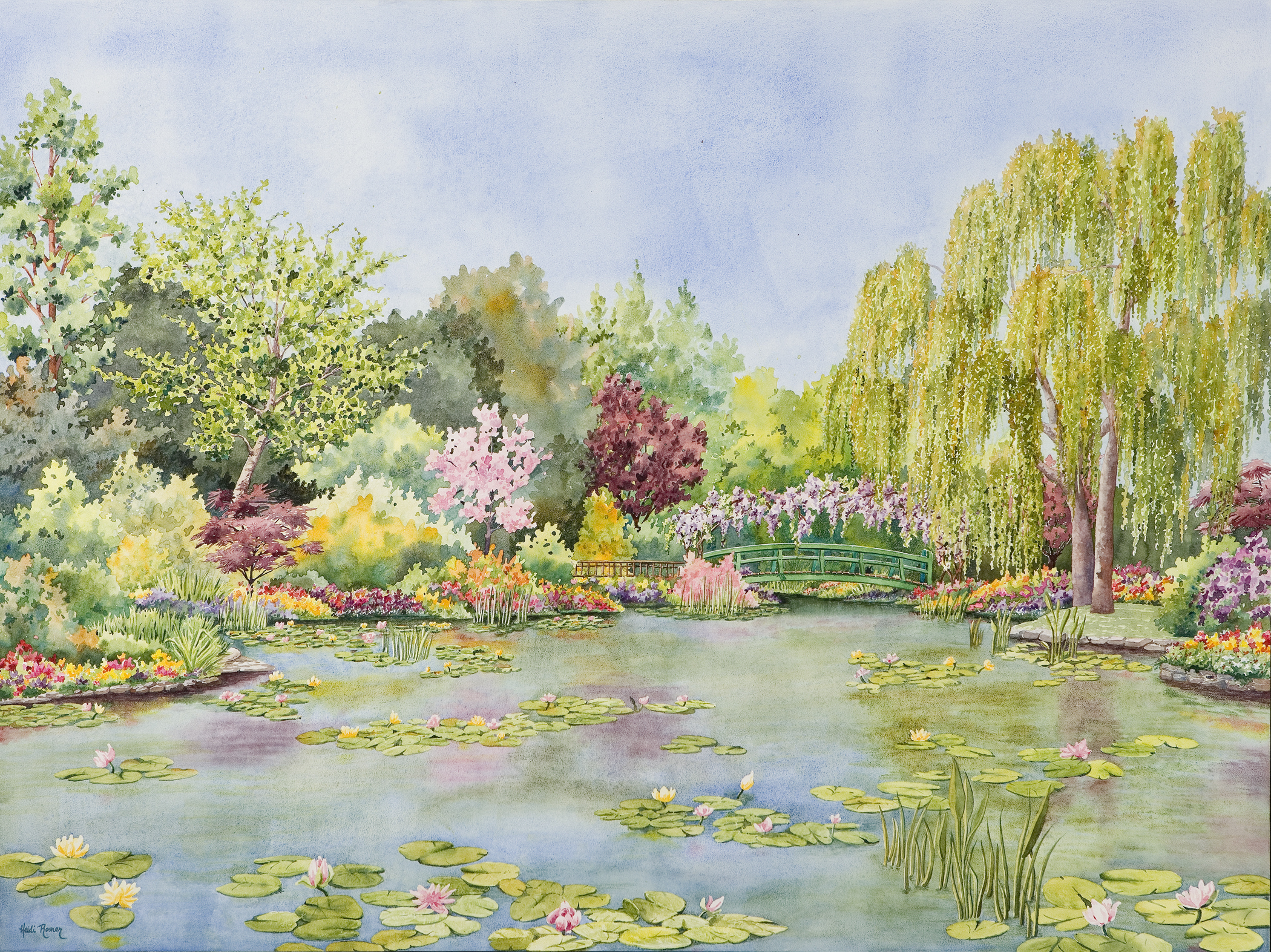 Heidi Rosner is an acclaimed fine art watercolor painter who has been a staple of the Celebration of Fine Art for two decades. Her work flips preconceived notions of watercolor art on its head, as she opts for vibrant scenes bursting with color and energy rather than the traditional soupy skies and misty landscapes. Heidi is heavily influenced by her extensive travels and love of plants, flowers and vegetation. More recently she’s begun to incorporate birds into her paintings and has forayed into making living art, which combines paintings with succulents in shadowboxes.