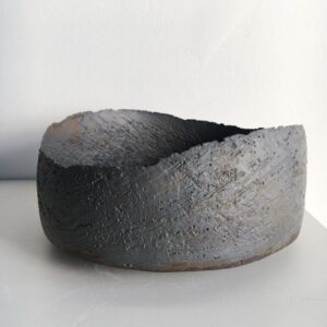 I started in clay and did some apprenticeships. There was a potter, Hiroshi Ogawa, out in Oregon who I would do wood firing with, which required feeding the kiln 24 hours, day and night, for four days straight. The kiln was decorating the piece itself. The flame and the ash would land on the surface, and the flame would create some flashing marks. And, in the fire box, where you’re throwing all of the wood and building up this ash pit, a lot of the pieces that came out of that ashpit were the ones that really struck me. So, then I started evolving into doing more sculptural work because of that. Those really heavy textures weren’t as suitable to functional pottery, which is what I was doing at the time. I started going a little bit more textured and sculptural, then eventually was doing purely sculpture.